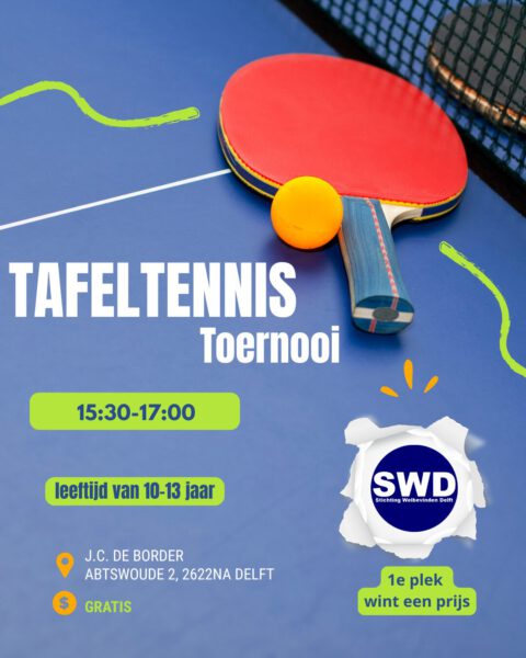 Deze vrijdag is er een tafeltennistoernooi met de tieners, deze activiteit valt in de inloopmiddag (deze gaat ook gewoon door van 14:30-17:00, dus je kanLees meer