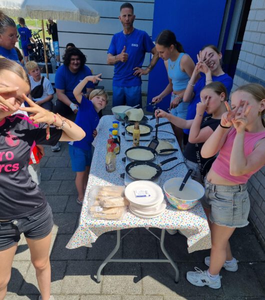 De jeugd was, op het moment dat de burgemeester aankwam, zelf lekker pannenkoeken aan het bakken, met vers fruit en ijs….het was ook zulk lekker weer.