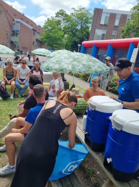 Er kwam nog een aardige betrokken bewoner uit de wijk die een mega meloen had, die we hebben opgesneden voor alle kinderen die aanwezig waren.