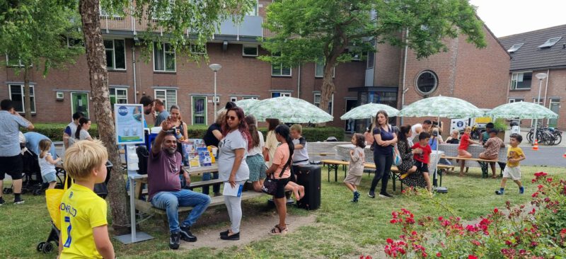 Wat hebben we weer geboft met het weer vandaag. Vanmorgen waren we al vroeg in de weer om alles klaar te zetten samen met onze partners. Dit buurtfeest werd georganiseerd d.m.v. een samenwerking tussen Delft voor Elkaar, Gemeente Delft, Vidomes, Plusmarkt Tanthof, attractieverhuur TimTom, en Stichting Welbevinden Delft en het was voor alle wijkbewoners en jeugd van de Bikolaan en omgeving.