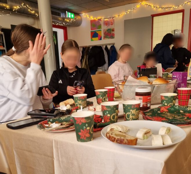 De eerste dag van de kerstvakantie genoten we samen met de tieners van een heerlijke kerstlunch. De ruimte was gezellig aangekleed en de tafel stond vol met lekker kersteten. Van broodjes en hartige hapjes tot zoete lekkernijen: er was voor ieder wat wils.