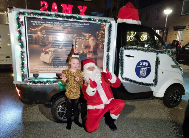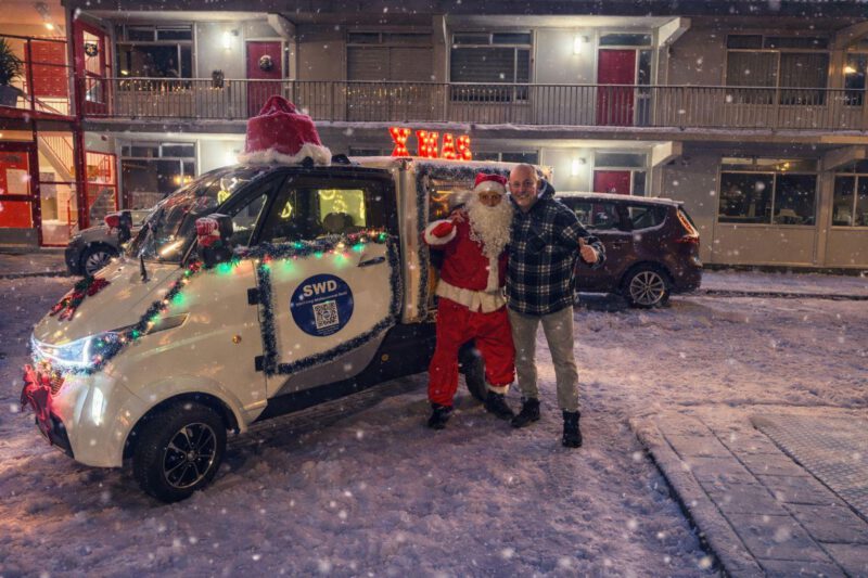 Dit jaar was extra bijzonder, want voor het eerst gingen onze kerstman en de feestelijk versierde SWD-kerstkar op pad. ๐ ๐ป Vanessa en de kerstman reden samen in het vrolijk versierde SWD-kerstkarretje langs alle adressen die zich hadden opgegeven.