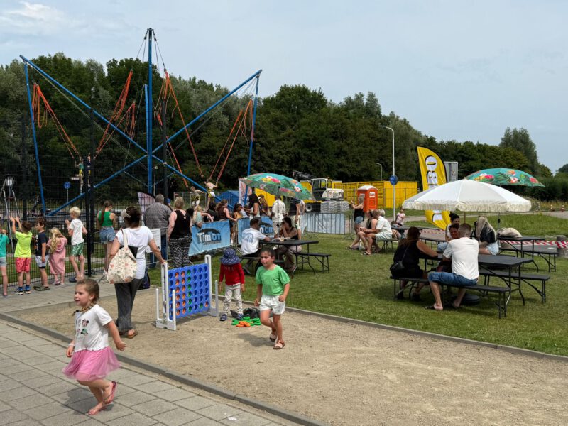 In de ochtend werden alle activiteiten opgebouwd en de locatie weer leuk aangekleed. Alles werd uit de kast gehaald om voor de kinderen en ouders/wijkbewoners er weer een leuke dag van te maken. Er stond een stormbaan in de voetbalkooi en daarnaast konden de kinderen nog voetballen of basketballen. Op het veldje naast de voetbalkooi was de bungy-trampoline opgezet, echt een eyecatcher waar veel kinderen op af komen. De heren van TimTom (attractieverhuur) hebben daar de hele dag gestaan om alles goed en veilig te laten verlopen.