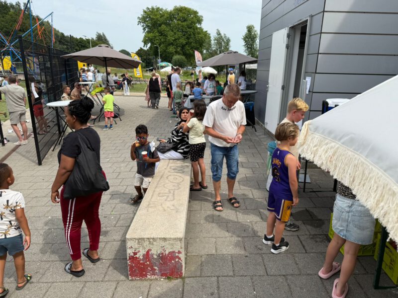 Bij het horeca hoekje konden de kinderen limonade of water halen en voor de volwassenen stond er een lekker bakje koffie/thee klaar. Jumbo uit de Dasstraat heeft deze middag gezond fruit, koek en broodjes knakworsten gesponsord, daar worden wij én de bezoekers ontzettend blij van. Floris is een betrokken ondernemer die graag iets voor de wijk over heeft.