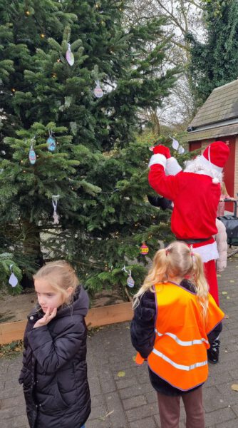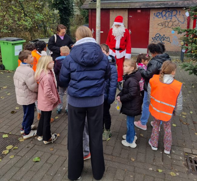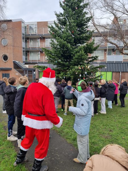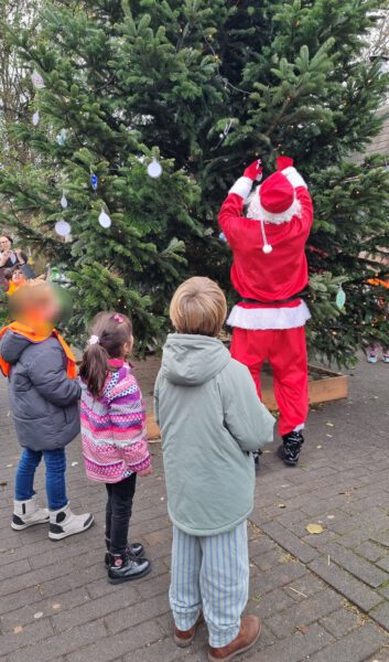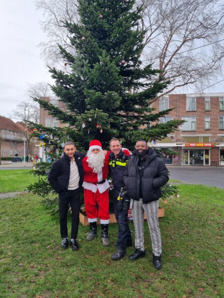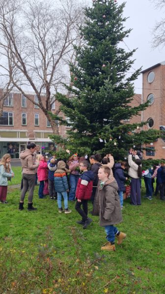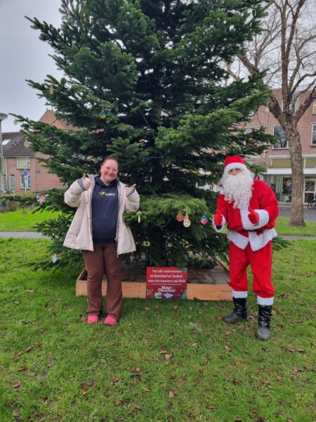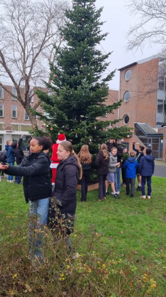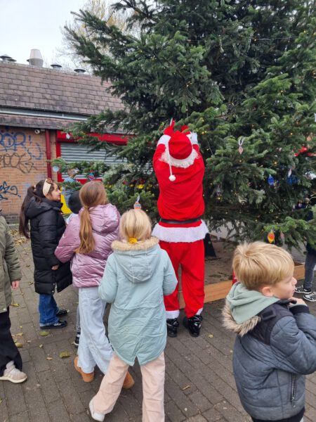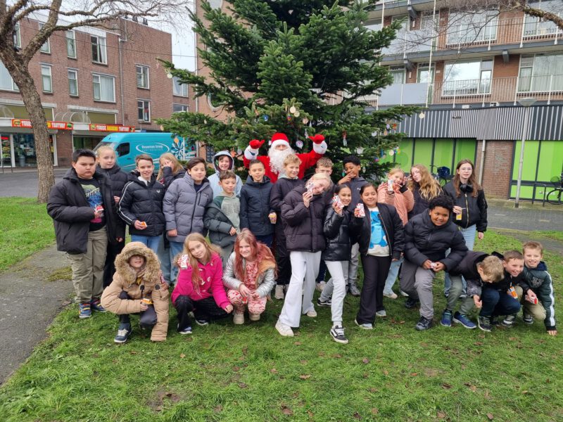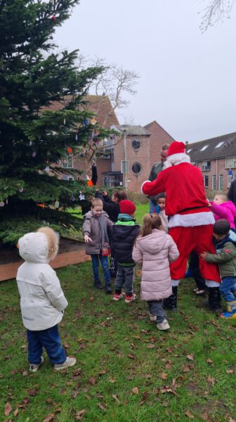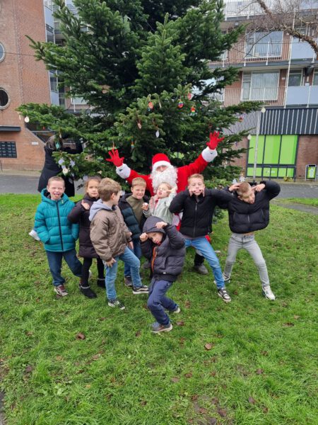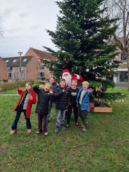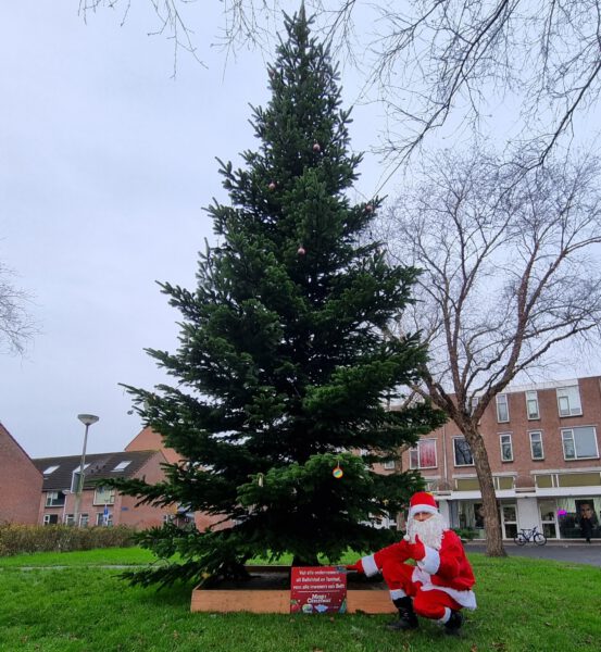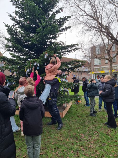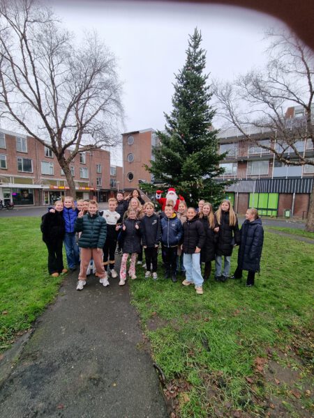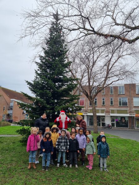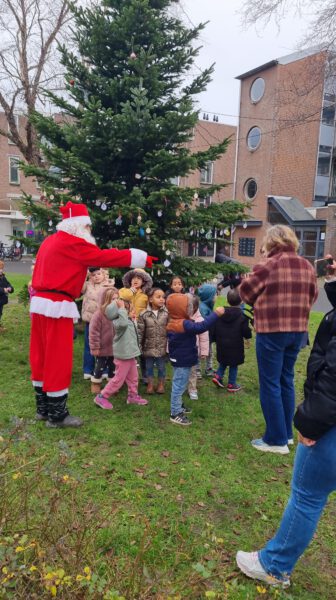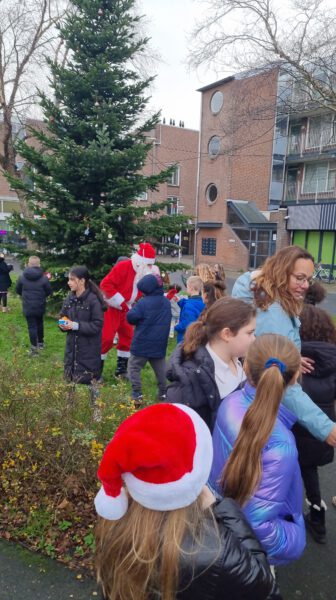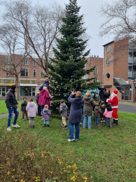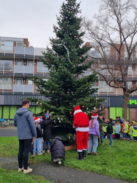 Op dinsdag vond de actie plaats op de Bikolaan. Ondanks het minder goede weer en af en toe wat regen, lieten de kinderen zich niet tegenhouden. Met natte jassen maar grote glimlachen mochten zij hun eigen kunstwerken zelf in de kerstboom hangen. Dat zorgde voor trotse gezichten en een kerstboom vol kleur en betekenis. De regen mocht de pret niet drukken: samen buiten bezig zijn, lachen en helpen, dát was waar het om ging. De kerstman liep er natuurlijk ook rond, hij komt al jaren gezellig de kerstballen ophangen samen met de kinderen, ze dansen en zingen dan altijd gezamenlijk.