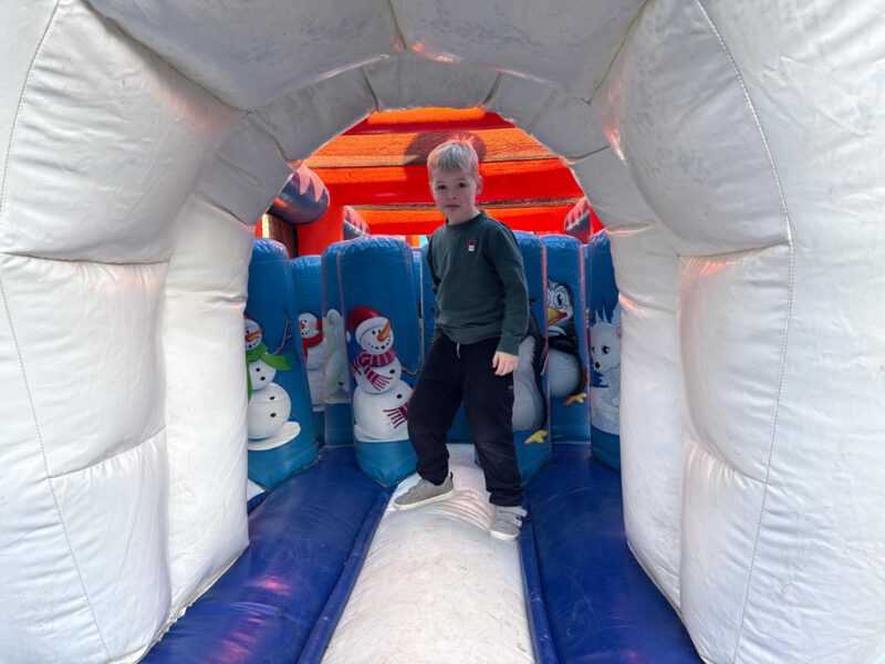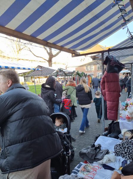 De markt stond vol met kramen, die een kerstsferen waren versierd, met prachtige en leuke spullen, terwijl de kinderen zich heerlijk uitleefden op de stormbaan. En wat was het druk met bezoekers, ontzettend leuk. Natuurlijk ontbraken ook de winterse lekkernijen niet: een verse oliebol of appelbeignet van (Oliebollenkraam Huijbregts uit de stad) viel bij jong en oud goed in de smaak. Daarnaast was er voor iedereen koffie, thee en chocomelk om lekker bij op te warmen.
